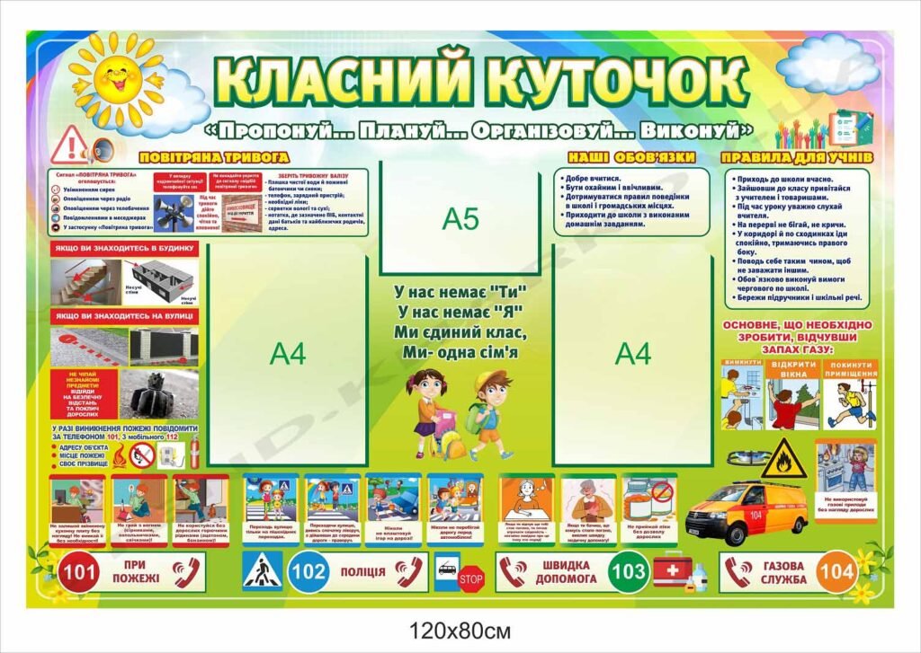 Класний куточок з правилами безпеки в початкову школу