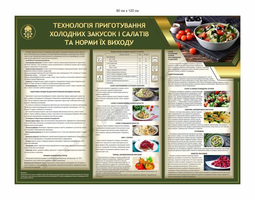 Стенд для їдальні НГУ “Приготування холодних закусок і салатів”
