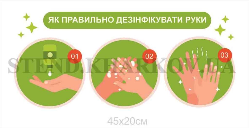 Стенд “Як правильно дезінфікувати руки”