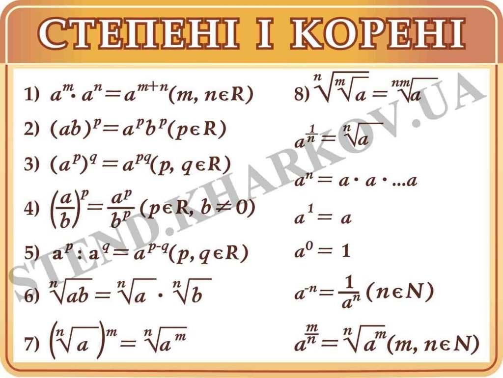 Стенд математичний “Ступені та корені”