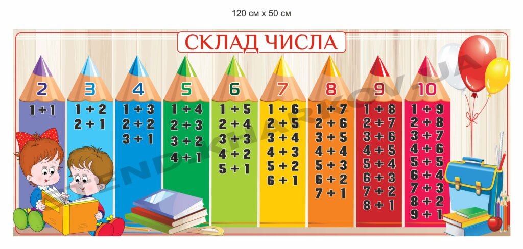 Стенд “Склад числа” різнокольорові олівці