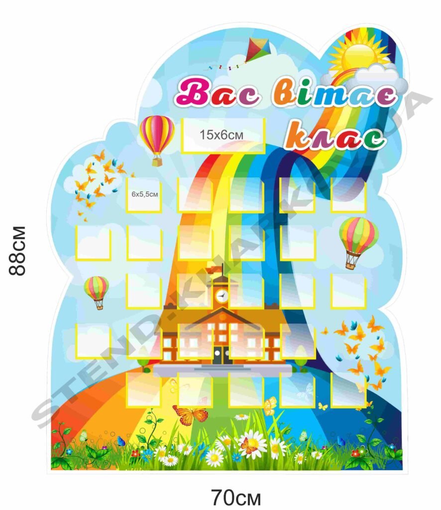 Стенд “Вас вітає клас” з кишеньками для фото