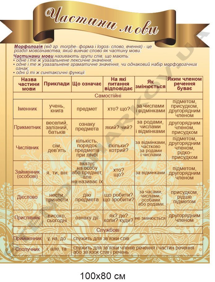 Стенд з української мови “Частини мови”